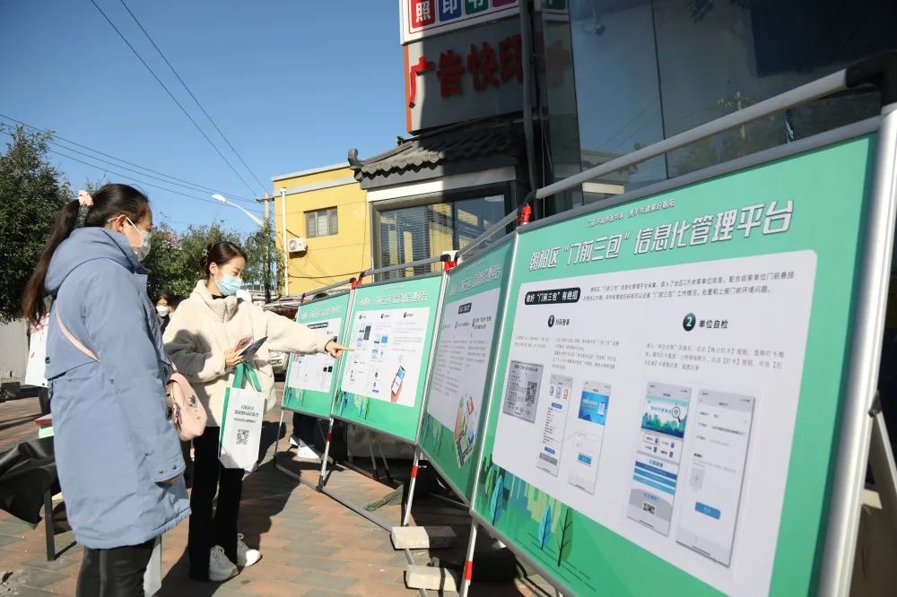 朝阳区持续开展“门前三包”信息化管理平台宣传活动,10月8日以来,区环境办分别在香河园、平房、酒仙桥、管庄、将台、常营、十八里店等10余个街乡开展“门前三包”信息化管理平台巡回宣传活动,进一步提高“门前三包”信息化管理平台的使用效率。
