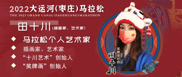 2022大运河(枣庄)马拉松完赛奖牌亮相,尺寸为15*6cm,由马拉松个人艺术家、插画家、“十川艺术”创始人、“奖牌画”创始人田十川亲自执笔,用奖牌构架起大运河与跑马爱好者之间的绝妙关系。