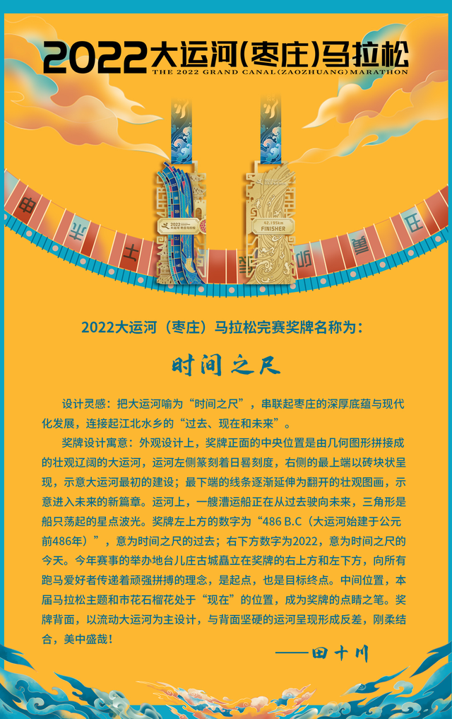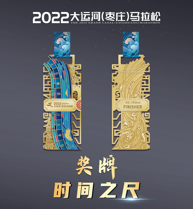 2022大运河(枣庄)马拉松完赛奖牌名称为:时间之尺