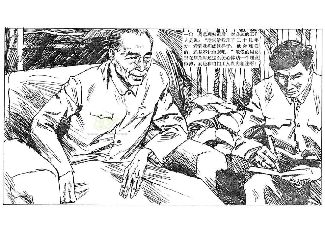 《周总理和理发师》是由中国美术家协会会员刘孔喜创作的一本连环佳作,讲述了周总理和理发师之间的感人事迹,反映了他永远心系人民的高贵品质。