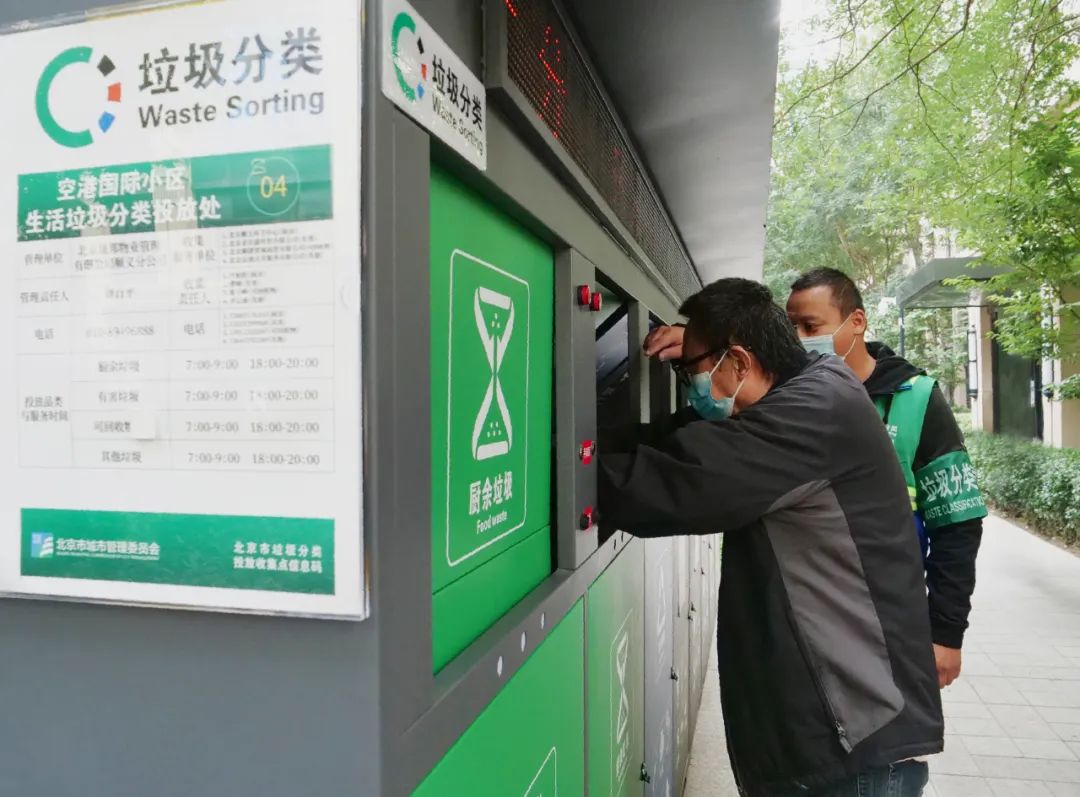 空港国际社区共有1247户居民,垃圾分类工作基础好,居民分类热情高,是顺义区首个安装新型智能垃圾分类桶站的社区。