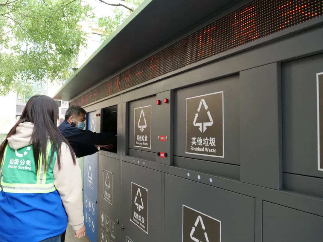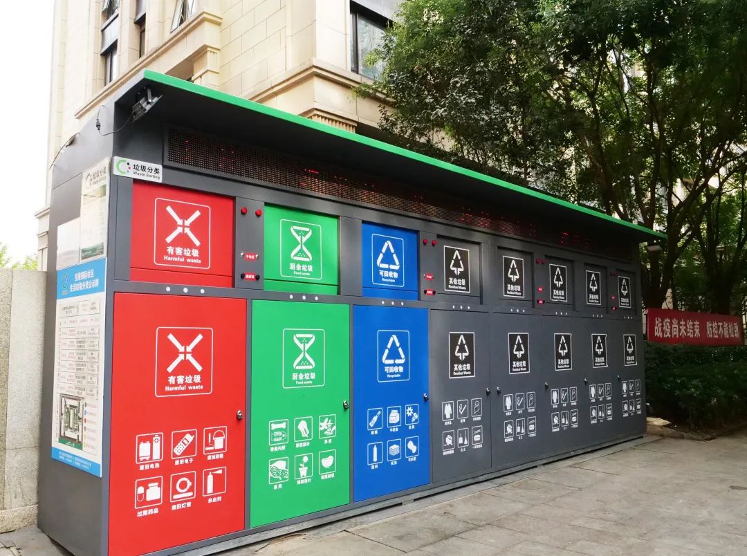 “这个智能垃圾分类桶站采用的是封闭式箱体,设厨余垃圾、可回收垃圾、有害垃圾、其他垃圾等多个自动化投放口,实行24小时监控。”空港国际社区负责人张然介绍道。