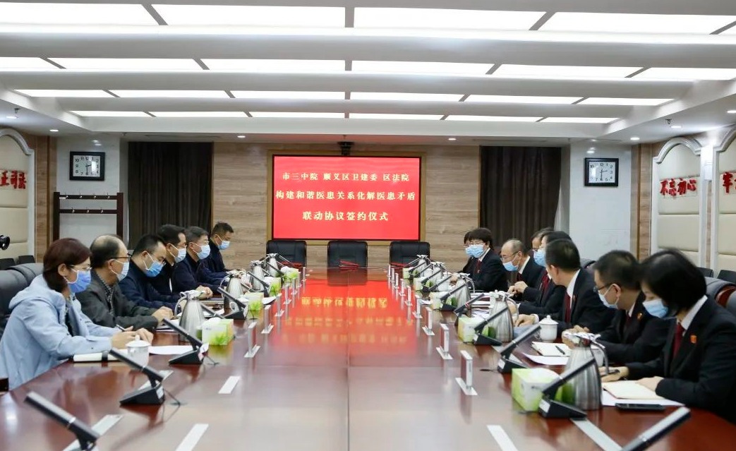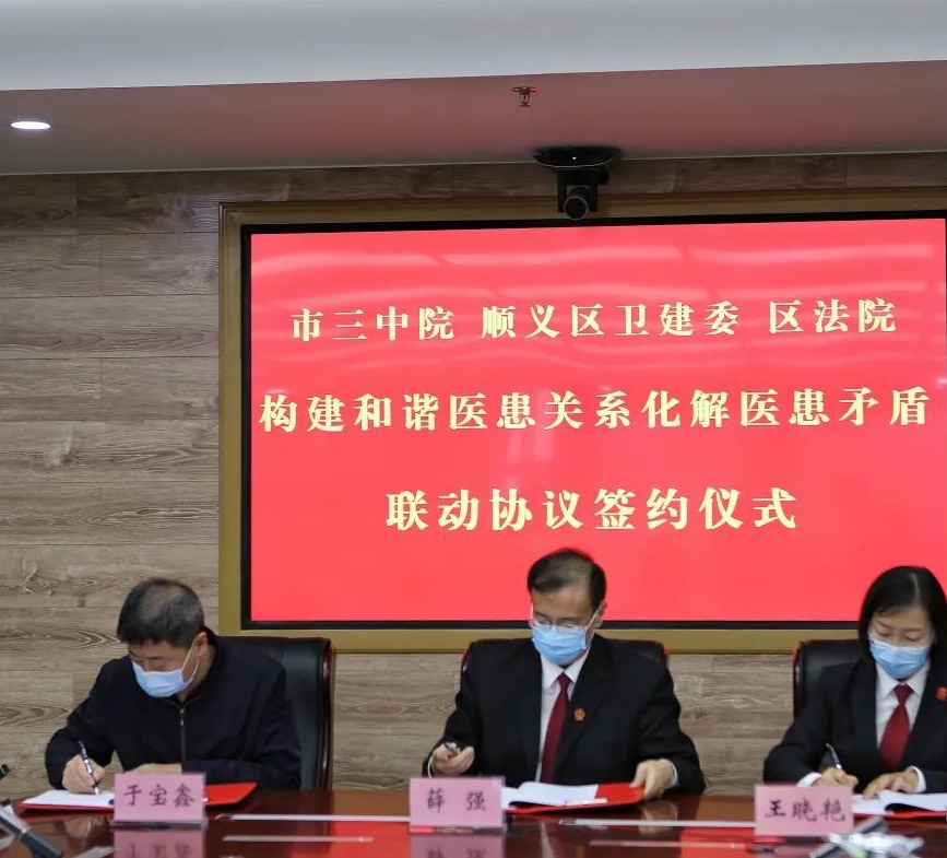 为充分发挥府院联动作用,促进辖区医疗卫生健康事业的法治化发展,10月26日,北京三中院、顺义区卫健委与顺义法院举行“构建和谐医患关系化解医患矛盾联动协议”签约仪式。