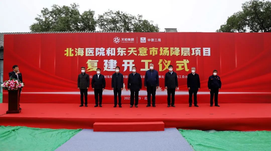 2020年,为响应《北京城市总体规划(2016年—2035年)》和中轴线申遗要求,西城区委、区政府周密部署,在什刹海阜景街建设指挥部及政府各相关部门大力支持下,天恒集团迅速落实,于2020年10月30日正式启动北海医院和东天意市场降层项目楼体拆除工作,并于2020年11月25日提前完成降层拆除。经申遗办专家、老城保护专家及国家文物局专家多次论证确定了项目复建方案。项目降层更新后,共减少地上面积3858平方米,减量约44.9%。该项目是北京市落实新总规、核心区控规、恢复中轴线景观视廊的第一个实施拆除降层的项目,也是贯彻北京中轴线申遗保护三年行动计划的重要举措。