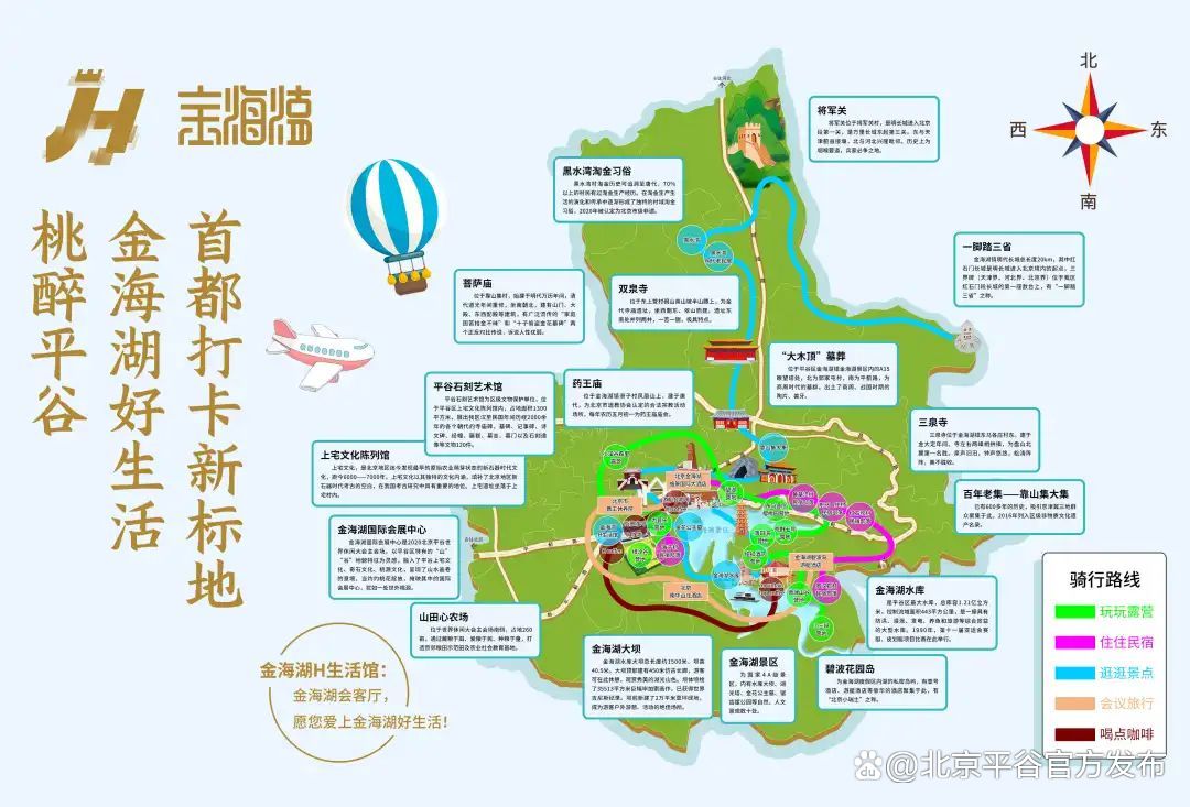 随着世界休闲谷建设的深入推进,平谷区“一湖两河多沟多点”空间架构全面打开,各乡镇街道逐步呈现独具特色的文旅休闲形象。经平谷区休闲工作专班提炼整理并与属地充分沟通,初步形成各乡镇街道世界休闲谷文旅形象宣传口号,首期策划推出“世界休闲谷·爱尚金海湖”。