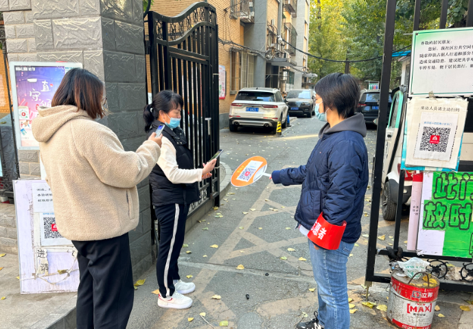 街道总工会主席薄述来到包片社区检查督导小区卡口疫情防控措施落实情况,严格查证、验码、测温、登记“四件套”,严防社区传播风险。