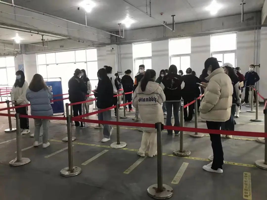 △ 疫苗接种现场,同学们有序排队等待