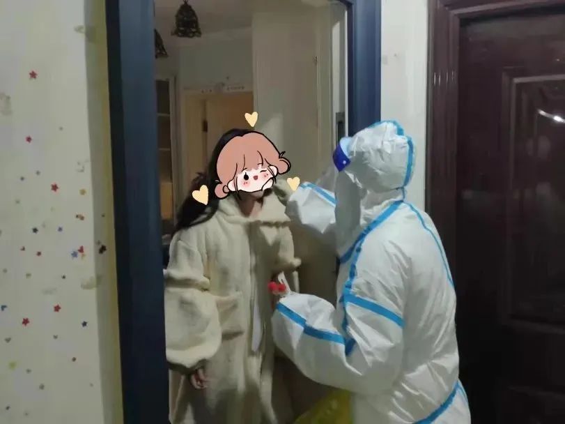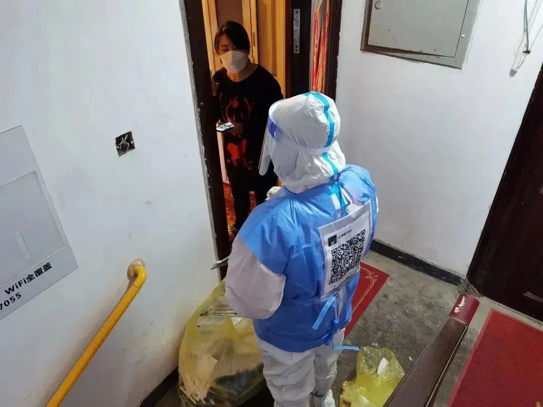 “您好,我们是采样工作人员,来为您采集核酸样本。”医护人员变身“大白”为居家人员上门采样,社区工作人员陪同做好协助工作。