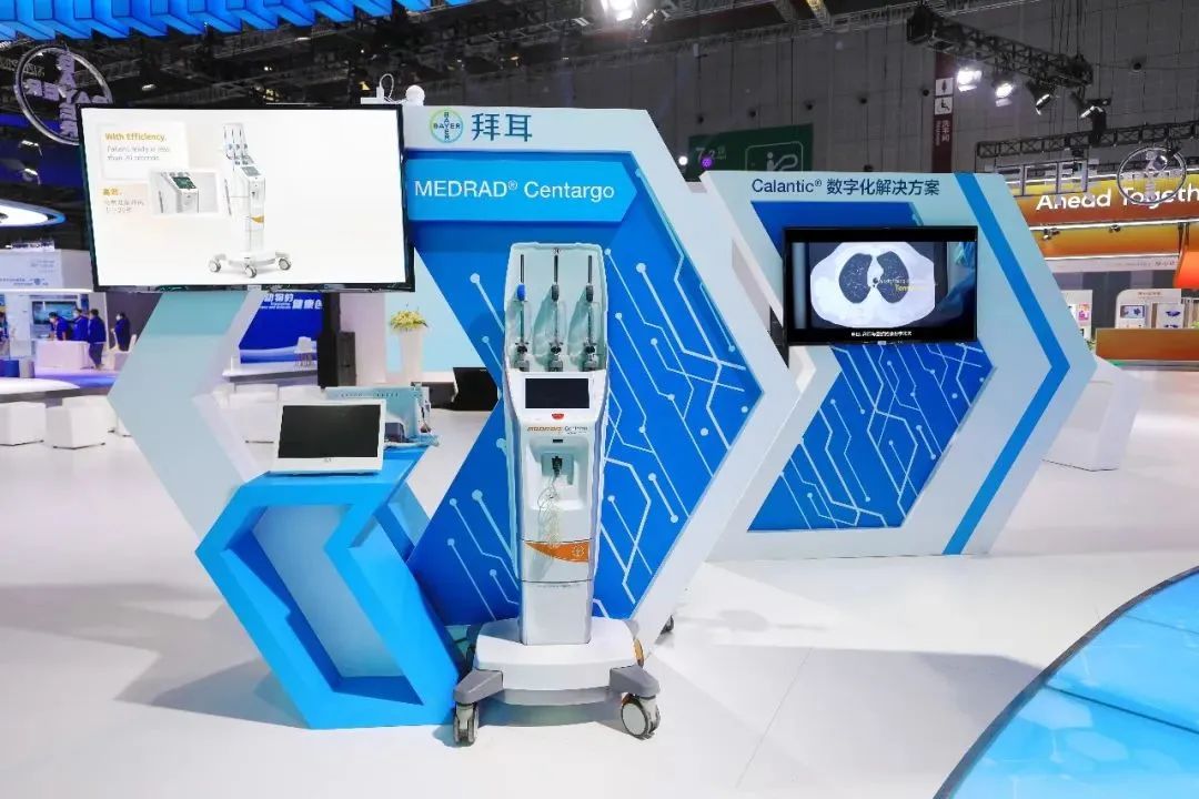 拜耳带来两款创新、智能化的影像诊断产品和解决方案,其中全新医疗影像人工智能集成平台Calantic于进博会进行“中国首展”,该平台为客户提供一站式综合解决方案;MEDRAD® Centargo高压注射系统,它是拜耳全球高工作效率的CT高压注射系统旗舰产品,拥有三个活塞式注射通道并提供信息化和智能化模块。