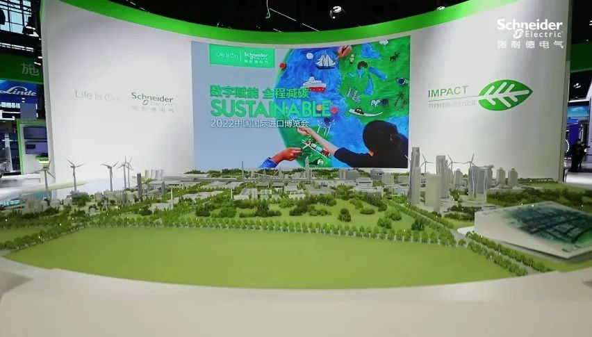 在本次进博会上,施耐德电气还展示了生态圈最新减碳成果,以及覆盖12大行业、60大零碳应用场景的“零碳城市”概念沙盘。