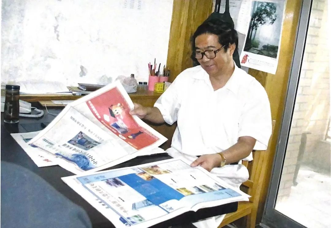 ▲图为王志勇在翻阅新出版的报纸