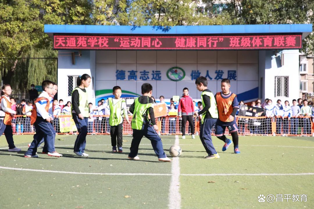 天通苑学校开展“运动同心 健康同行”班级体育联赛。学校根据不同学段学生的身心特点,制定不同的联赛项目。每一位小球员都努力拼搏,在这片“绿”色舞台上,星光闪烁,演绎出一幕幕独属于自己的“足”下精彩。