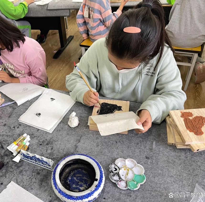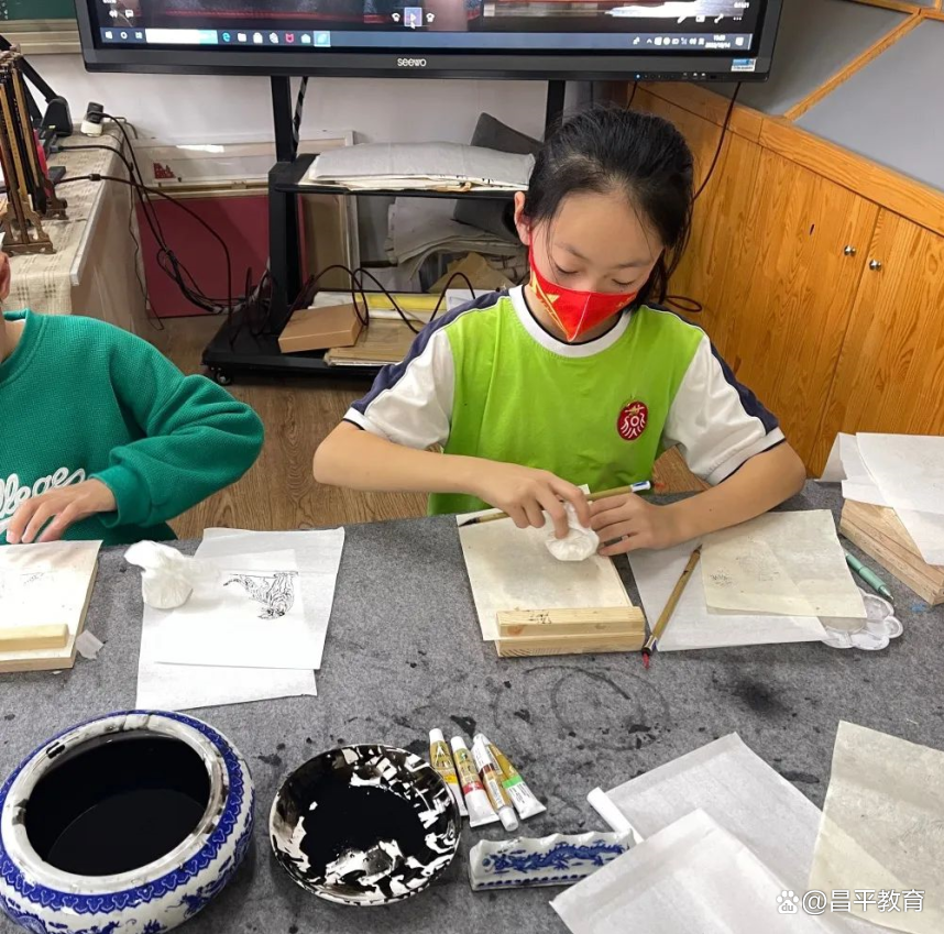 木版水印字画是中国特有的版画印刷技艺。它集绘画、雕刻和印刷为一体,根据水墨渗透原理显示笔触墨韵,既可用于创作体现自身特点的艺术作品,也可逼真地复制各类中国字画。燕丹学校将“木版水印”课程引入校园。同学们在美术教师的指导下,亲手体验“木版水印画——虎”的制作过程。大家纷纷表示,通过这门课程,不仅了解和感受了非遗艺术的历史传承和文化特色,还亲身体会到中华优秀传统技艺的匠心和魅力。