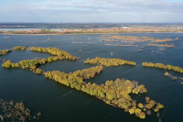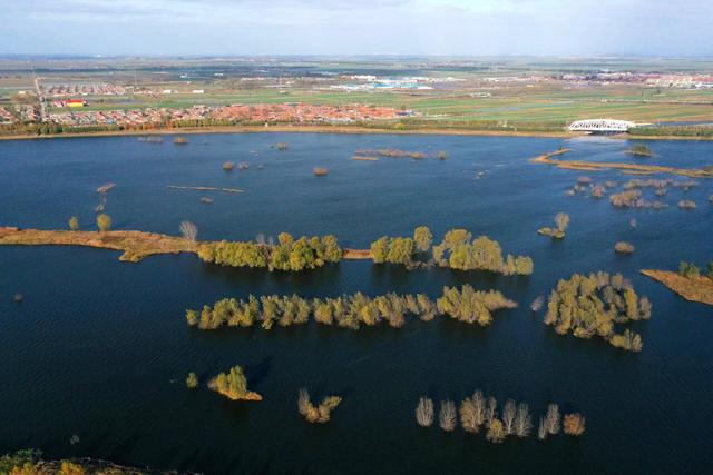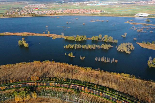 11月13日,大沽河青岛市即墨区段,大河静水流深,岸堤植被丰富,构成一幅壮观雅致的生态画卷。(大众日报客户端记者 卢鹏 通讯员 梁孝鹏 报道)