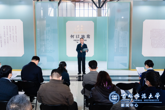 孟繁华讲到,首都师大书法学科由我国著名书法教育家欧阳中石先生创办,是我国高等书法教育和学术研究的重镇。三十多年来,在欧阳先生治学精神引领下,书法院培养了大批高层次专业骨干人才,在推动书法教育事业发展和坚定文化自信自强中做出了重要贡献。“何以驰骛”是面对厚重书法传统的时代追问,也是践行欧阳中石先生书教理念的学理之问。此次展览既是对我校书法人才培养的检验,也是书法院师生对党的二十大的献礼。他希望书法院全体师生植根传统,守正创新,努力开掘书法在建设社会主义文化事业中的独特优势,为高等书法教育事业在中华民族伟大复兴的新征程中进一步繁荣发展贡献首师力量。