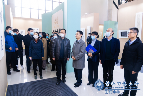 官景辉宣布展览开幕并在观展后谈到,此次展览秉承欧阳先生书教理念,根植传统、守正创新,为书法教育提供了可贵样本。他表示,首都师大书法院在欧阳中石先生的主持下,建立了第一个以书法为研究方向的博士学位授权点,形成了完备的高等书法教育体系,培养了大批专业骨干人才;欧阳中石所书“中华美德古训”展的作品被编写为“全国培育和践行社会主义核心价值观优秀读本”;所研制的《中小学书法教育指导纲要》成为全国中小学开展书法教育的教学指导文件。为此,他给予书法院办学“高端、权威、规范、有用”的整体评价。