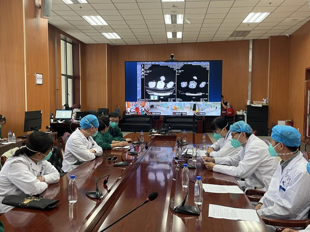 赵万全(左四)参与医疗救治专家组病例讨论