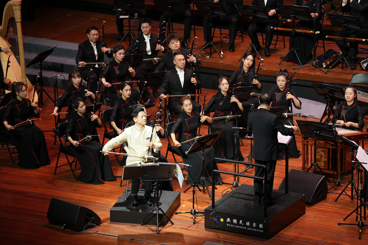 无论是《梅之韵》《梁溪音诗》中强化音色的延展效果及力度的起伏变化,还是《梦华江南》中民族管弦乐队与人声音色的交织与融合,都能感受到指挥、乐队对音乐作品细致入微的处理与演绎。《第二二胡协奏曲——太湖风情》中,一串串精美的音符从邓建栋的弓下流淌而出。作曲家王建民与演奏家邓建栋这对“老搭档”,无疑是对民族管弦乐与二胡的性能、表现力最熟悉的音乐家之一,他们是无锡同乡,又熟稔江南民歌。邓建栋的演绎可谓是御风驰骋、破浪以飏。