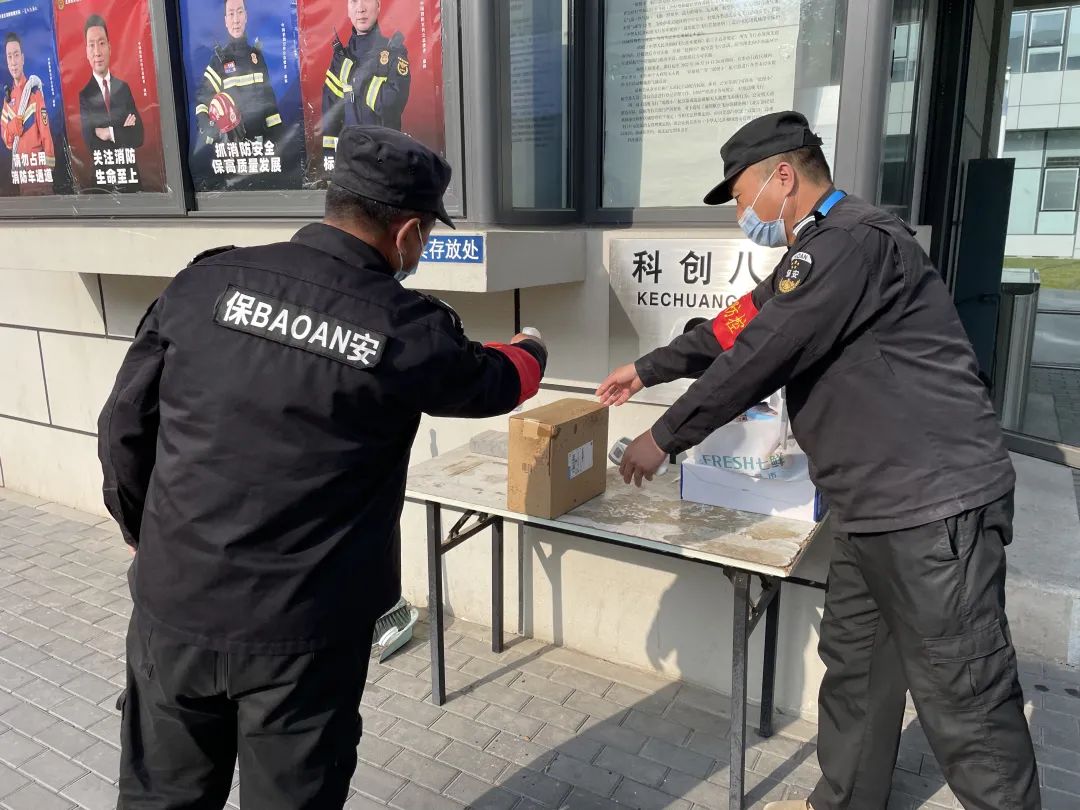 随后,记者来到赛莱克斯微系统科技(北京)有限公司看到,在大门口不仅设置了行程轨迹码、健康宝码等扫码牌,还设置了外卖快递临时存放点。现场保安告诉记者:“所有进门人员都会查验‘四件套’,并且平常的外卖快递均放在暂存点,并及时进行消毒,全力确保人员安全。”在探访过程中,记者发现该企业员工在进入时,自觉在大门处排队,间隔两米,逐一按照要求进行扫码测温。并且,针对外卖快递等,现场保安会及时对相关物品、周边环境进行消毒。