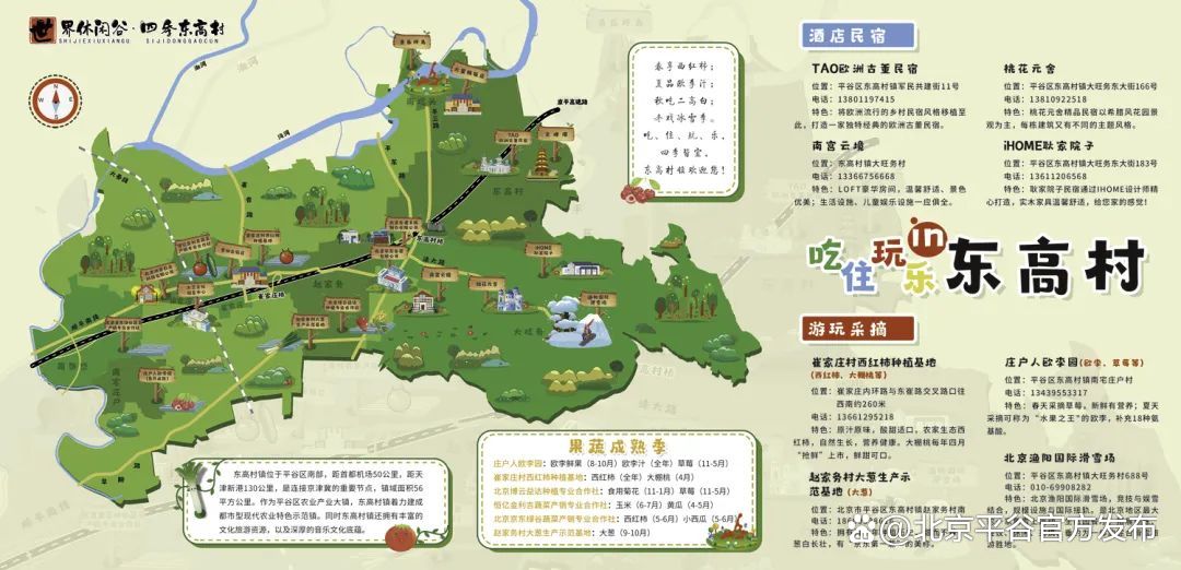 春来踏青,夏赏音乐,秋采硕果,冬戏冰雪,一年四季精彩纷呈。假如您有时间,到平谷区东高村镇采风休闲,体验慢生活,一定会爱上“世界休闲谷·四季东高村”。