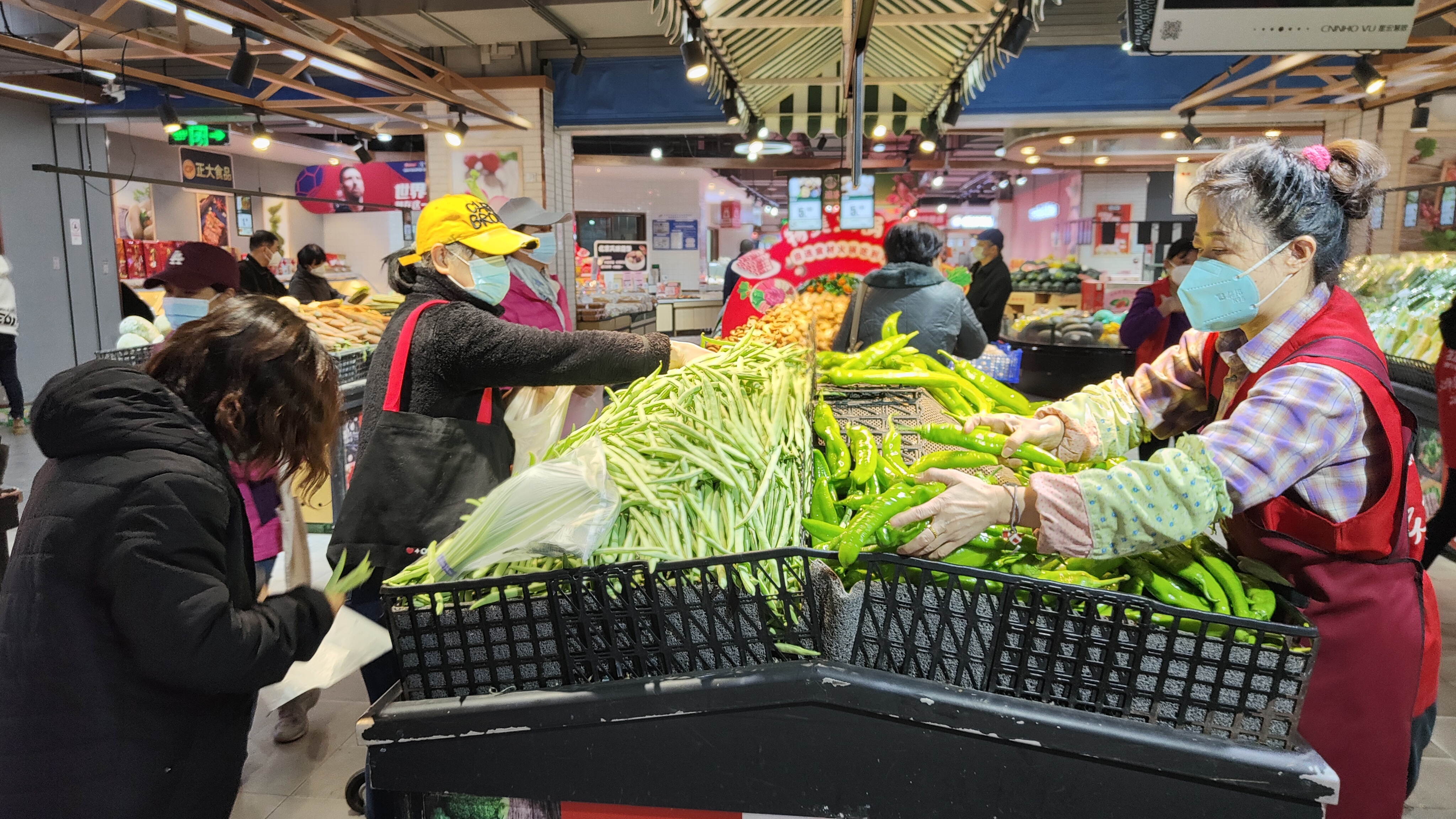此外,店内的防护和消杀工作也是做得很细心,从入口的扫码测温到工作人员的每天核酸检测以及消毒工作,从店内的每两小时的全场消杀到购物车用完之后的立即消杀,都保障了店内疫情防控做细做全。“我们不仅要保证居民能够及时买到价稳菜,也要保证他们买到安心菜,坚决把疫情防护和百姓的健康安全放在首位,让不管是来店的顾客还是线上选购的顾客都可以买的安心,吃的放心。”刘兆龙说道。