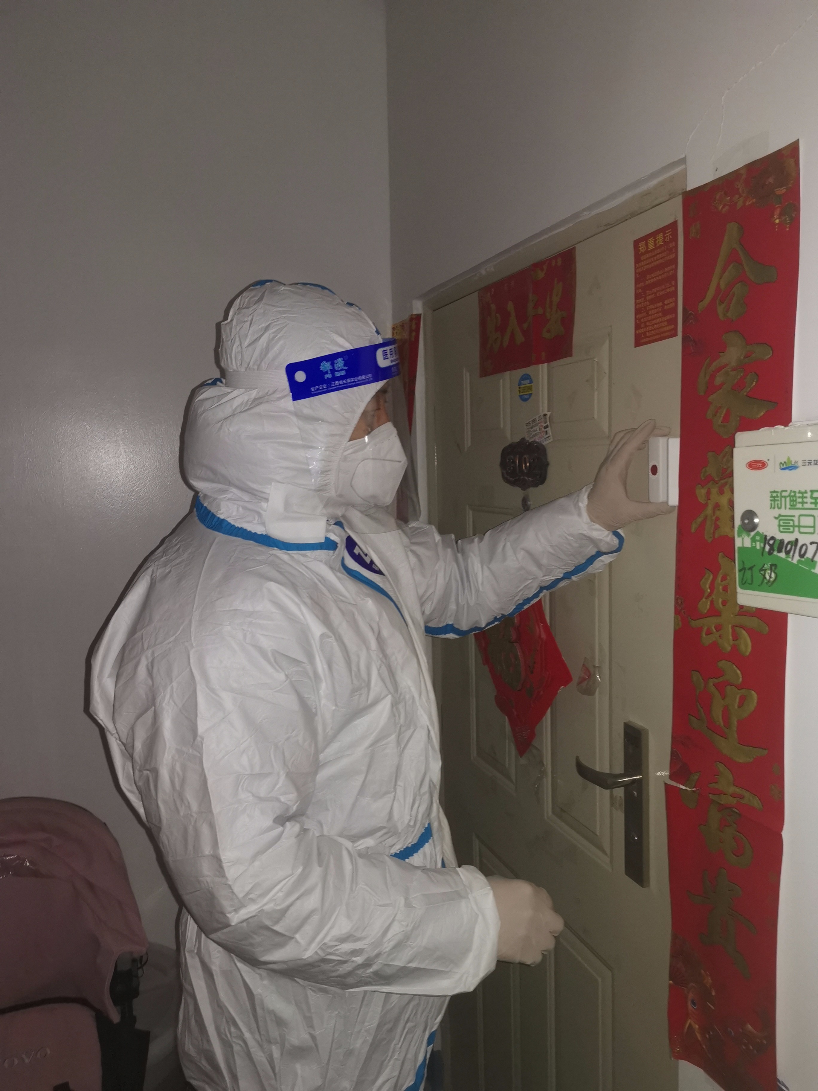 在接到随时待命的通知后,昌平区农业服务中心就立即与下沉街道对接,组织开展门磁安装和个人防护培训。打开包装、安装芯片、装上电池、两端靠近一个粘门框一个粘门上……经过工作人员的“教学”,支援人员迅速掌握了穿脱防护服与门磁安装的要领。