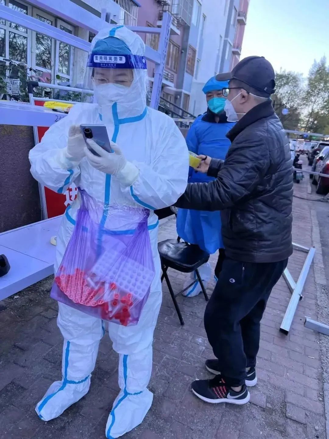 面对闭环的工作,她把封控的一整栋楼,从1层到28层,每一户她都曾敲过家门,测核酸,发抗原,跟居民解释封控政策,记录居民关于孕妇就医、医保购药等各项需求,然后逐一落实。“特殊人群我都特意联系过,我们这里有九个多月的孕妇,也有需要药品的老人,也有残疾人,我都给他们留下了自己的手机号,有事随时联系我!”