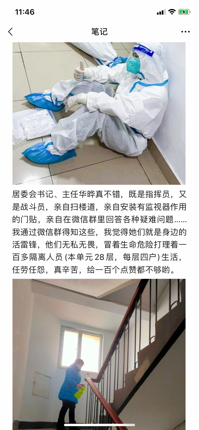 社区居民聂先生在居家隔离期间一直在写电子笔记,其中一篇也提到对华晔书记的点赞感谢。