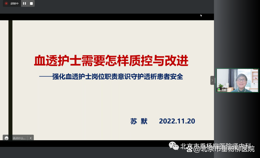 我院腹透中心欧凤霞护士长、王丹护士、曹蕊护士、张海旭护士以及张恩翔医生,结合平日工作的体验及感受,就腹透患者居家护理、远程管理、患者自我管理、医护患共同决策及APD远程患者管理的临床价值及特殊时期远程管理的优势这几方面问题进行了分享,使得到场的腹透相关医护人员受益匪浅,收获良多。
