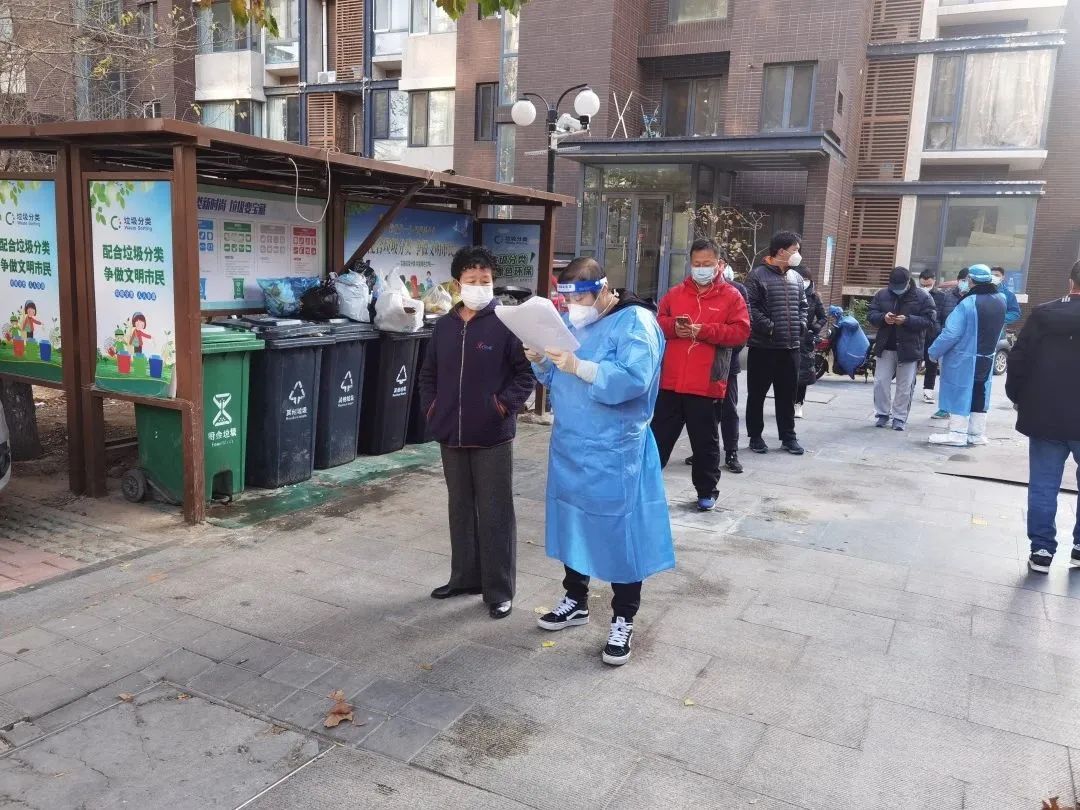 第一天核酸检测,社区共分7组14人,考虑到人员不够,并且需要爬楼,社区书记刘媛拨通了储备志愿者张薇的电话。接到电话后,张薇立即到岗,协助社区完成上门核酸采样,挨家挨户敲开居民家门,一直忙到深夜11点多结束才回家。“咱们这有什么需要我帮忙的吗?我可以在居委会守夜。”在职党员邴贵杰回家路过居委会时,看到刘媛在门口安排工作,便主动上前请缨,想做些力所能及的事。担心社区人手吃紧,压力繁重,他连连叮嘱“有我能帮上忙的直接喊我就行。”