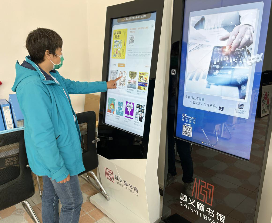 村民在大孙各庄镇数字图书馆阅读电子书。