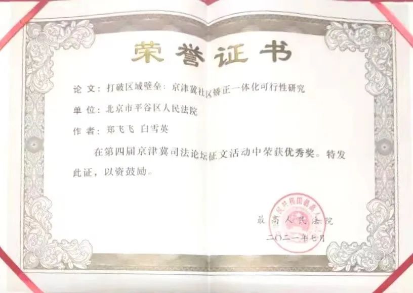 “平谷区是京津冀协同发展的‘桥头堡’,平谷法院在其中担负着服务之任、保障之责,所以在做司法实务研究的时候,我也会聚焦于京津冀这个命题。”
