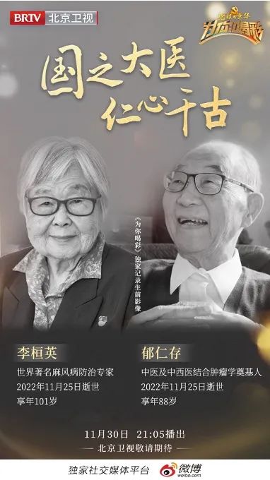 北京卫视《为你喝彩》推出特别节目《国医远去 仁心千古》,以此追忆两位教授为我国医疗事业发展孜孜求索,不断奋斗的时代烙印。