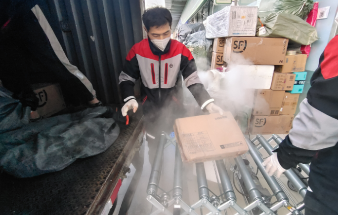 除了配送的进港快件,所有揽收的快件同样有严格的消杀流程。北京顺丰速运公司回龙观片区负责人蔡磊介绍道,快递小哥在揽收快件后,第一时间会使用消毒喷壶进行一次消杀,快件拿回网点后,还会经过消毒机再次全面消杀,严格落实快件消杀防疫工作。