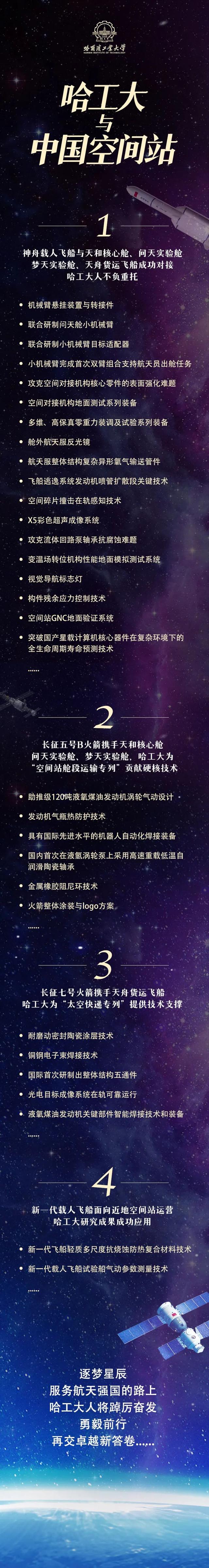 这是我国载人航天工程立项实施以来的第27次飞行任务,也是进入空间站阶段后的第4次载人飞行任务。此次发射成功标志着空间站关键技术验证和建造阶段规划的12次发射任务全部圆满完成。快来跟小编一起了解中国空间站建造背后的哈工大力量吧!