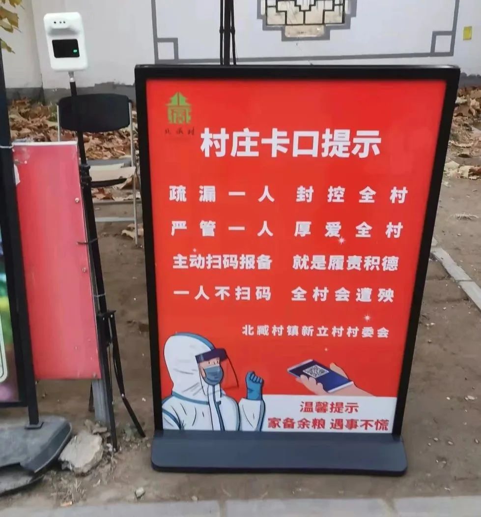 “疏漏一人,封控全村;严管一人,厚爱全村......”日前,北臧村镇新立村受疫情影响,部分区域被临时封控。近日,走进新立村发现,村庄4个卡口不只加派了人员值守力量,还放置了“话聊”宣传牌。