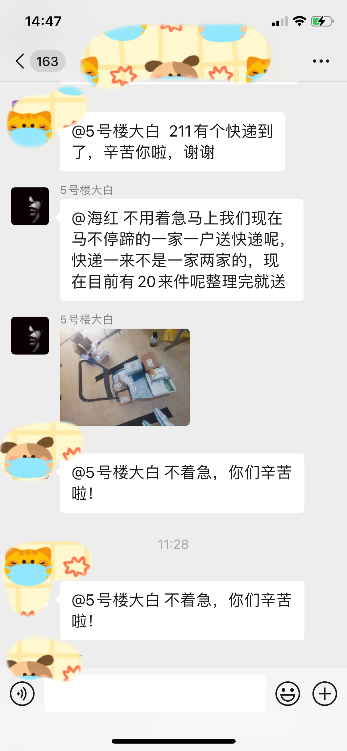 百祥物业经理王小磊告诉记者,这些天我们负责保供的工作人员虽然只在一个楼内活动,但是平均步数都在 2 万左右,为大家送快递,消杀,清运垃圾。“大家说不累是假的,但是居民们每次说谢谢的时候也感觉很暖心,大家都是相互理解,相互支持的。”