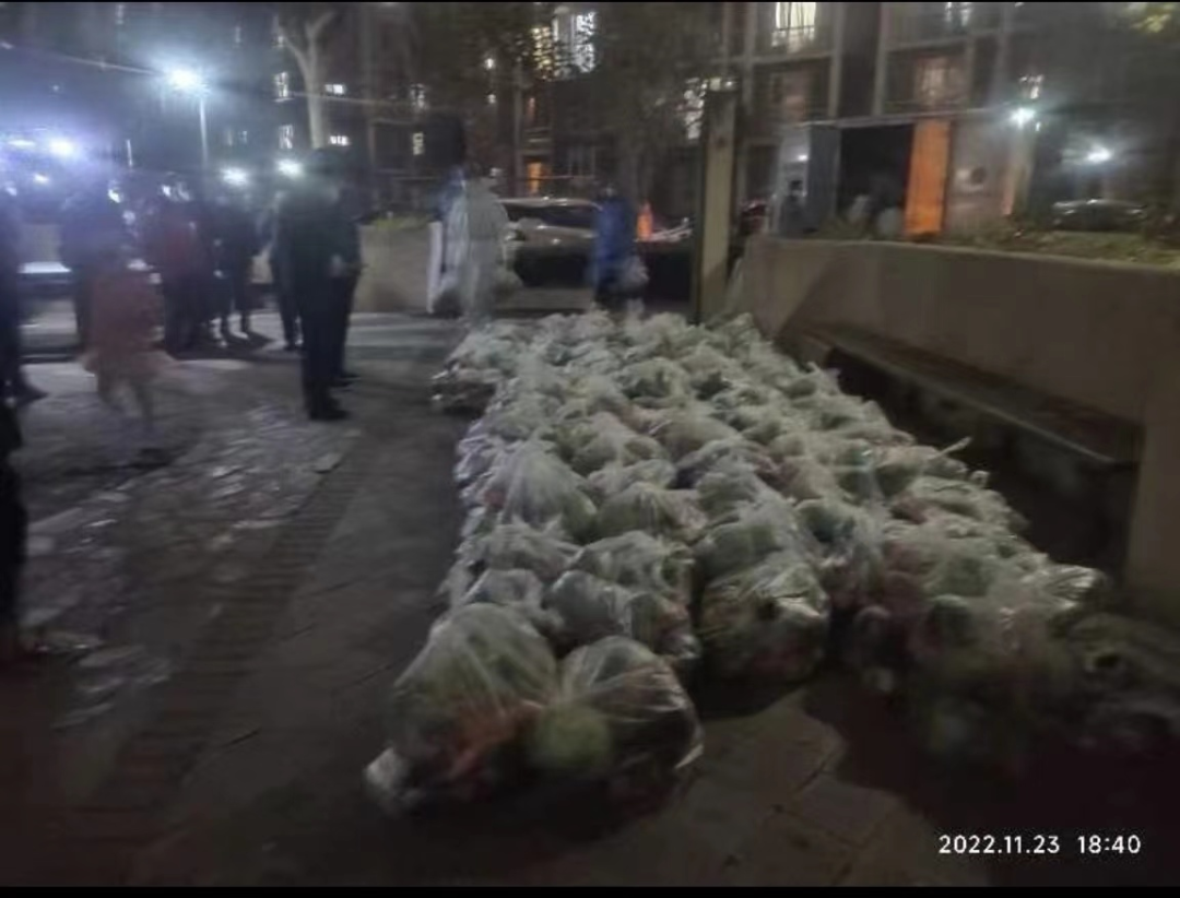 步入冬天的北京夜晚很冷,工作人员依然忘我忙碌着。身体的疲惫,是为了居民的暖心。大家心里只有一个念头:尽快将新鲜的菜送到居民手中,为居民所做的一切都值得!