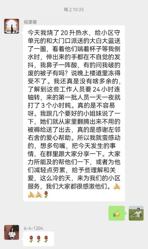 在社区的贴心服务下,传递了爱心,温暖了人心。社区工作人员们的默默付出,让居民们深深感受到,在疫情防控的关键时期,始终有人和大家同舟共济,携手并肩打赢疫情防控“阻击战”。