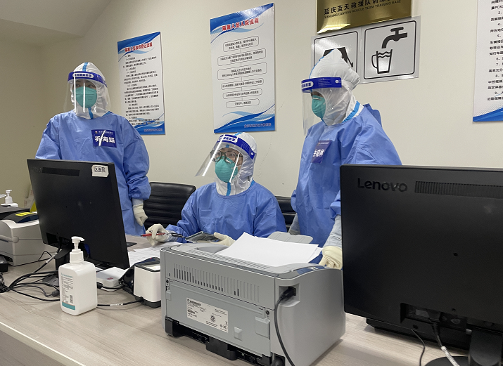 区卫健委副主任延庆方舱医院临时党支部书记丛志辉说:“方舱医院保障是区委、区政府交给我们的重大政治任务,在筹建方舱伊始,我们第一时间就成立了方舱医院临时党支部。”
