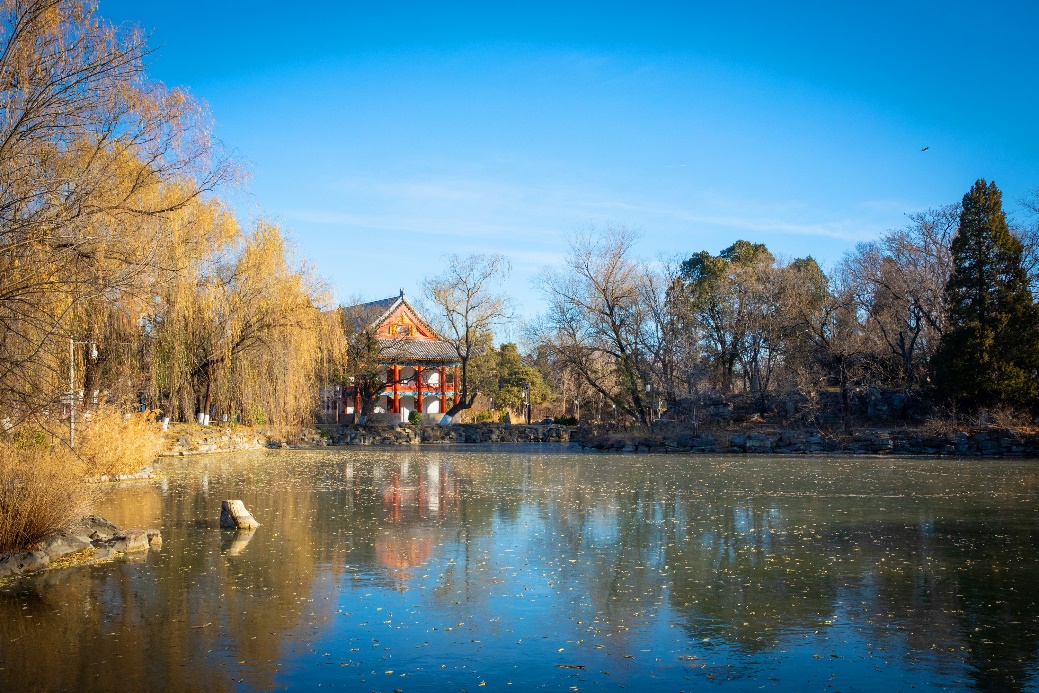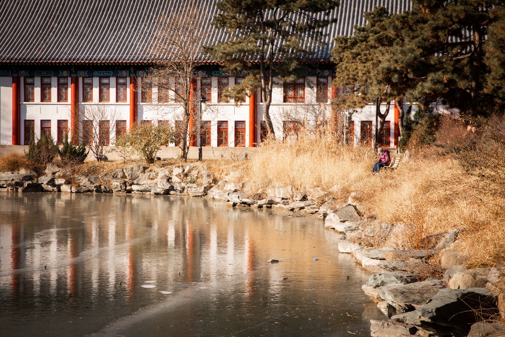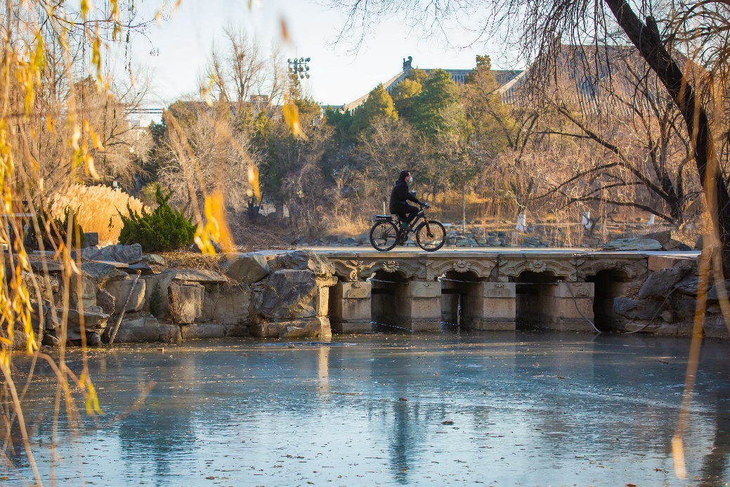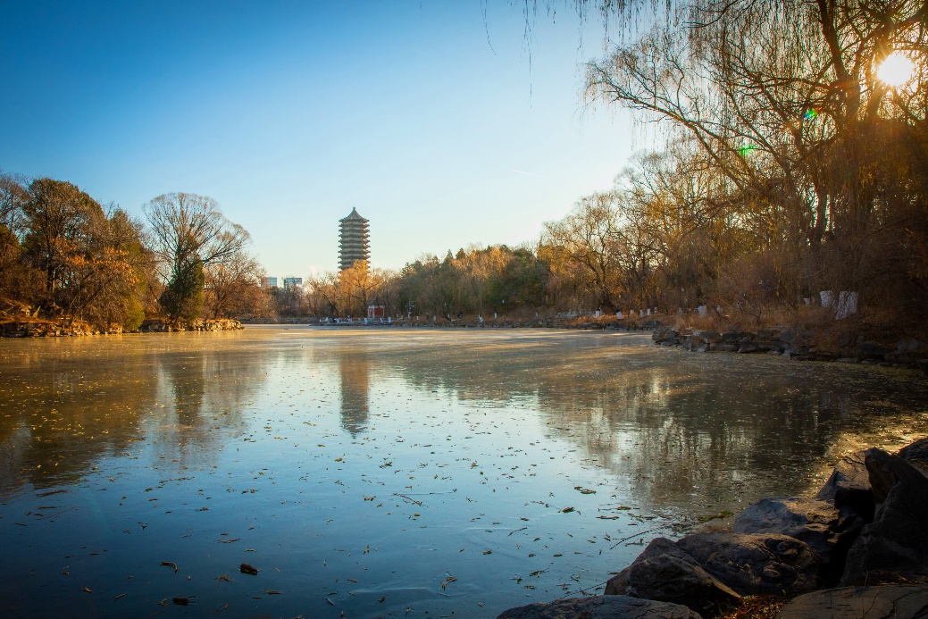 十二月的燕园静悄悄,湖面初结薄冰,比往日里多了一份平静。阳光照射在冰面上,点点金光给冬日的燕园增添了几分不同的色彩。万物生灵都慢了下来,让我们也一起驻足在湖边“慵懒”地享受着午后阳光,用镜头记录下古老燕园的优雅和从容。