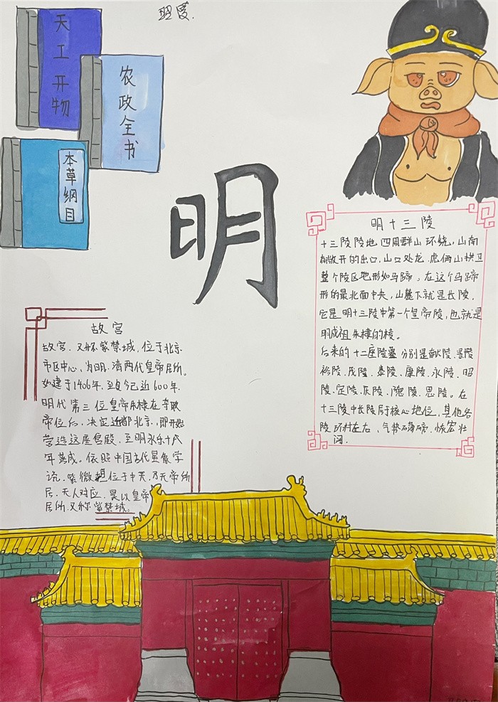 此次手抄报征集以手工绘制故宫、明十三陵等内容为主题,大家充分发挥奇思妙想,运用一双双巧手和丰富多彩的颜色,绘制出一幅幅体现着明朝文化和历史故事的图画,将美好的祝愿寄托在画中。