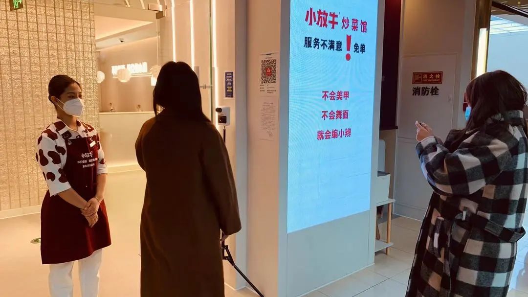 在呷哺呷哺(新中关店)记者看到,工作人员认真查验每位进店堂食顾客的核酸检测证明,门口显著位置也放置了提示牌。“今天是我们第一天开放堂食,员工按照相关要求进行核酸检测、接种疫苗,并进行每日健康监测,全程佩戴口罩。对进店人员进行测温、扫码并查验48小时内核酸。”工作人员说道。