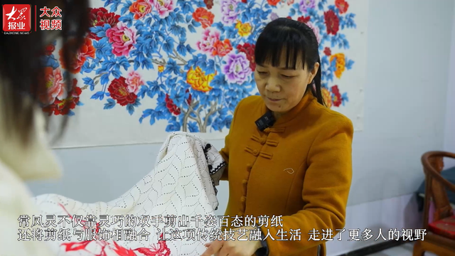 剪纸作为最古老的中国民间艺术之一,以别出心裁、精心巧思著称。在菏泽市巨野县,市级非物质文化遗产剪纸项目传承人常凤灵,依托牡丹、麒麟等特色文化与服装、工笔画等表现形式,逐渐催生出一种独特的剪纸工艺,把剪纸“穿上身”“贴成画”,传统剪纸技艺在华丽变身的同时亦在传承路径中找到了新定位。