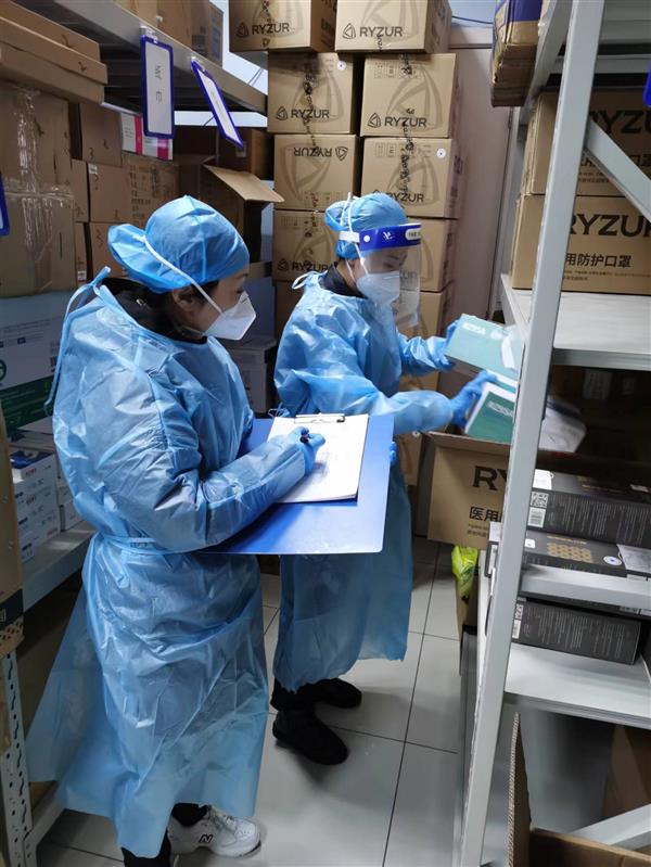 她们定期对物资进行盘点,及时采购备货,确保关键时刻调得出、用得上;按照节约原则,发放时做到按需分配,并登记台账;定时定点对物资进行全面科学消杀,让防疫人员用得安心。