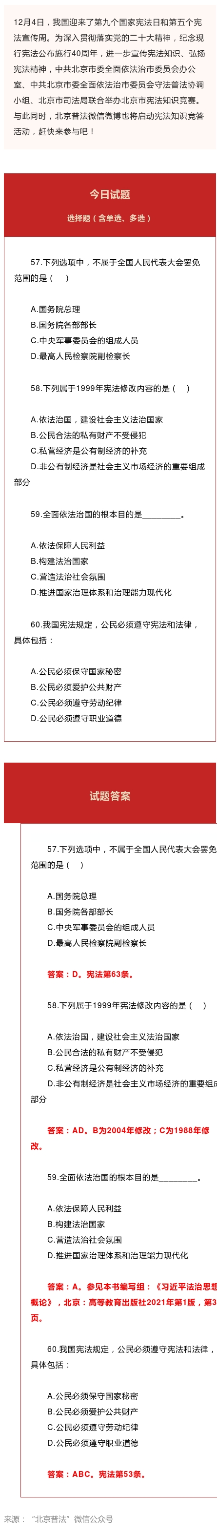北京市宪法知识竞赛丨每周知识竞答(十五)