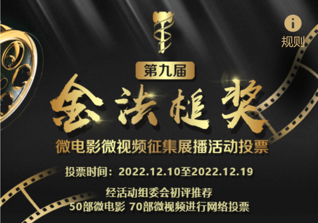 第九届“金法槌奖”微电影微视频征集展播活动投票正在进行,北京法院此次共有3部微电影、5部微视频入围评选,网事君邀您对活动组委会初评的50部微电影和70部微视频进行网络投票。