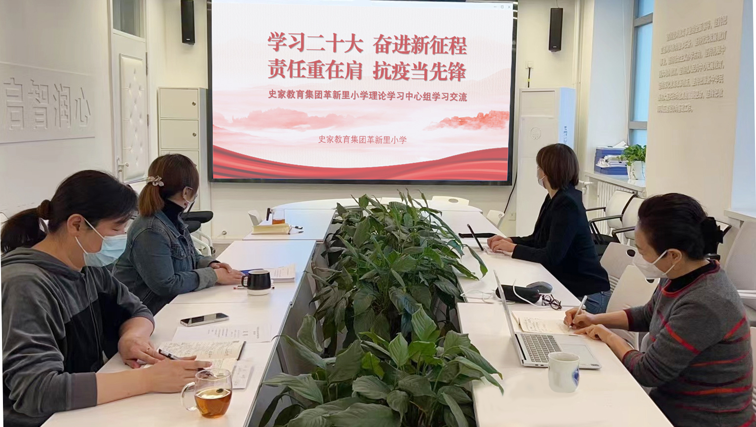 王欢校长带领驻校干部制定此次活动方案,召开理论学习中心组线下会议,深入学习党的二十大精神、观看《精神的力量》纪录片,传承伟大建党精神,汲取奋进力量,班子成员结合自身学习联系实际工作,进一步统一思想,围绕学校疫情防控及线上教学的各项要求,进行交流研讨。