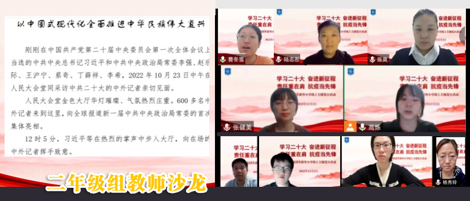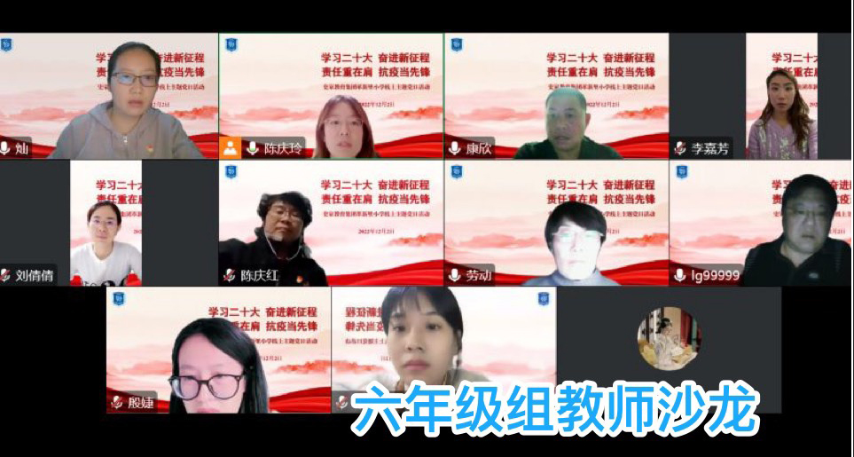 全力投入,全情奉献。年级组教师以沙龙形式开展组内学习宣讲,围绕党的二十大精神,结合当前疫情防控严峻形势,凝聚组内教师同舟共济、共克时艰的强大意志力量,引导教师统一思想,做好家校沟通,确保师生、家校和谐稳定。