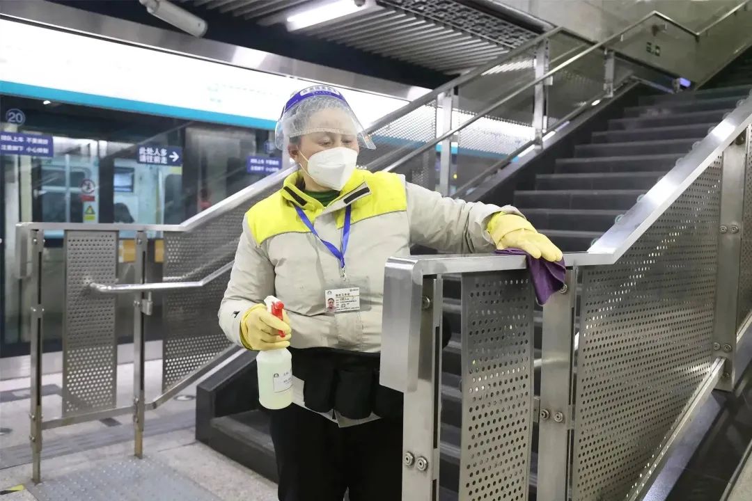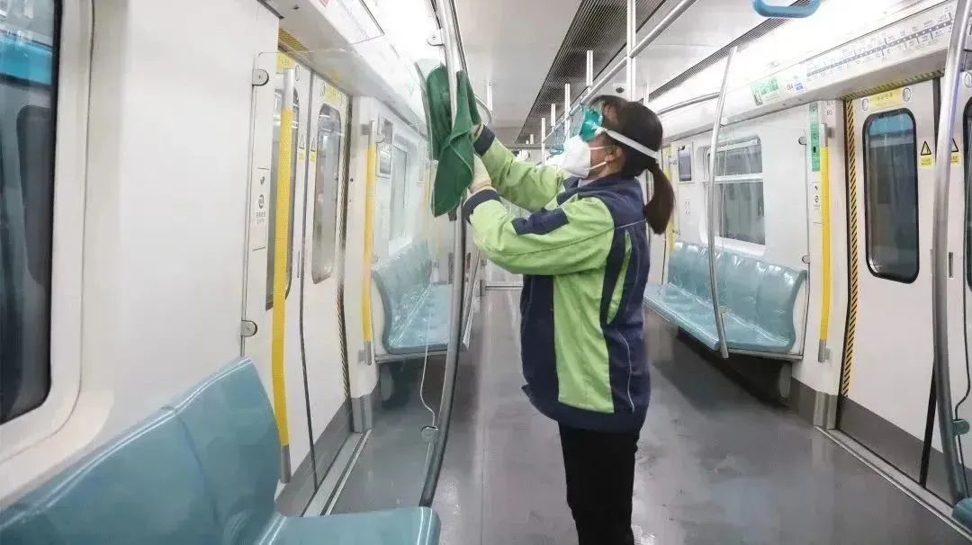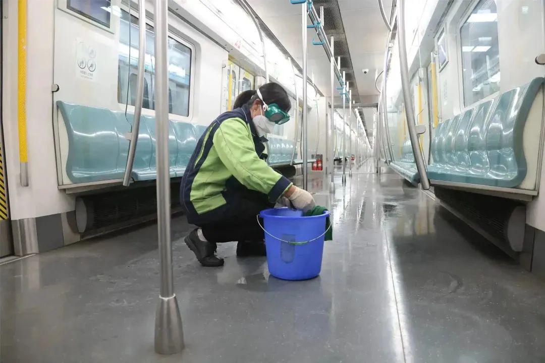 列车每次回库消毒1次,并对拉手、立柱、扶手、座椅、车门等乘客易接触部位进行重点清洁和消毒。